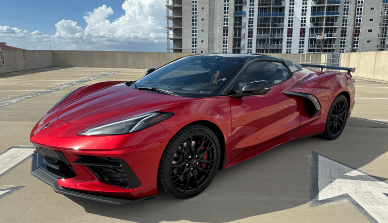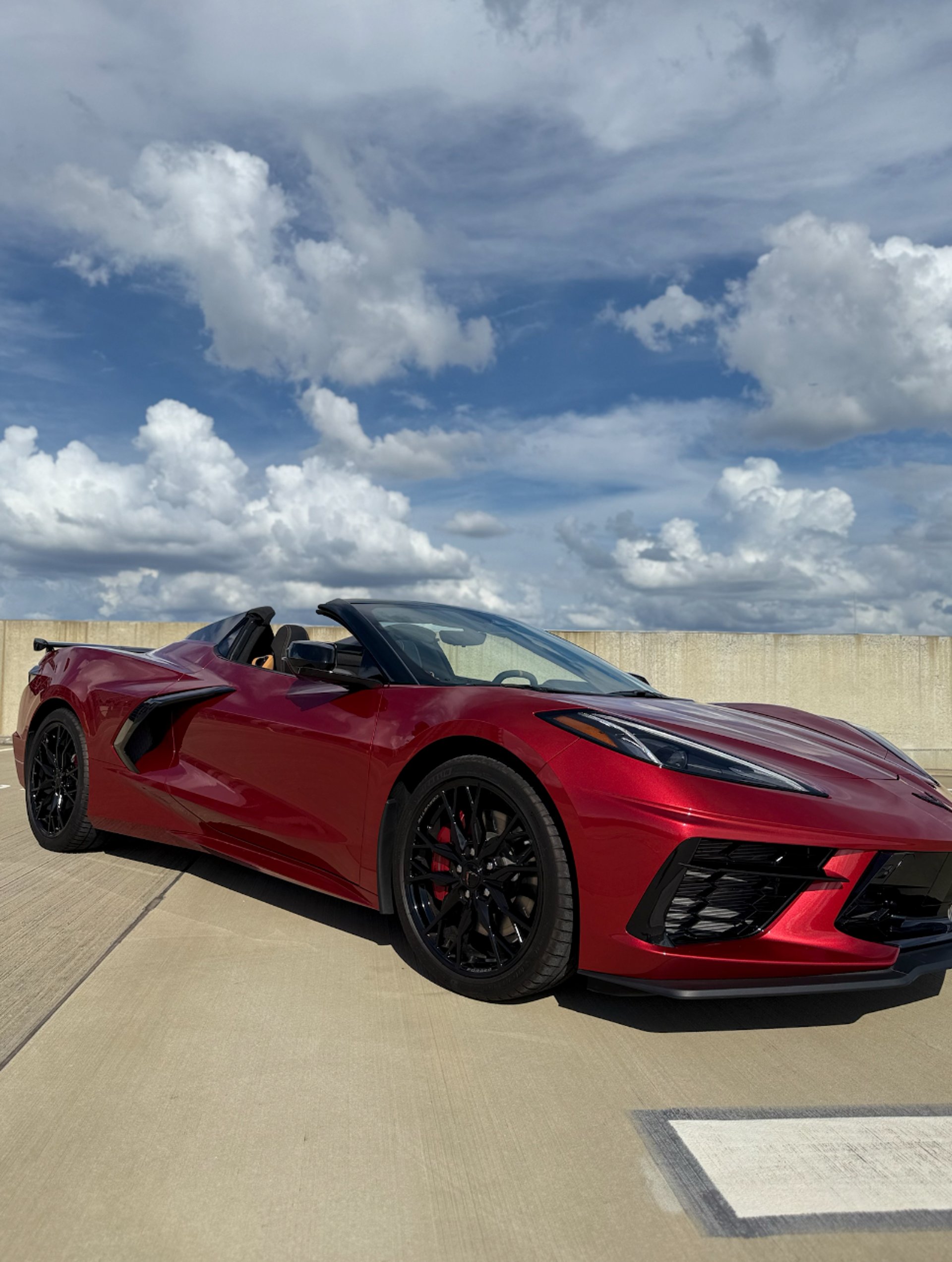 Supercar speed meets everyday drivability. This mid-engine Corvette delivers 495 HP and rockets from 0–60 mph in under 3 seconds. Outfitted with the Z51 Performance Package, it features upgraded brakes, sport suspension, enhanced cooling, an electronic limited-slip differential, and an aggressive aero kit with rear spoiler and front splitter.