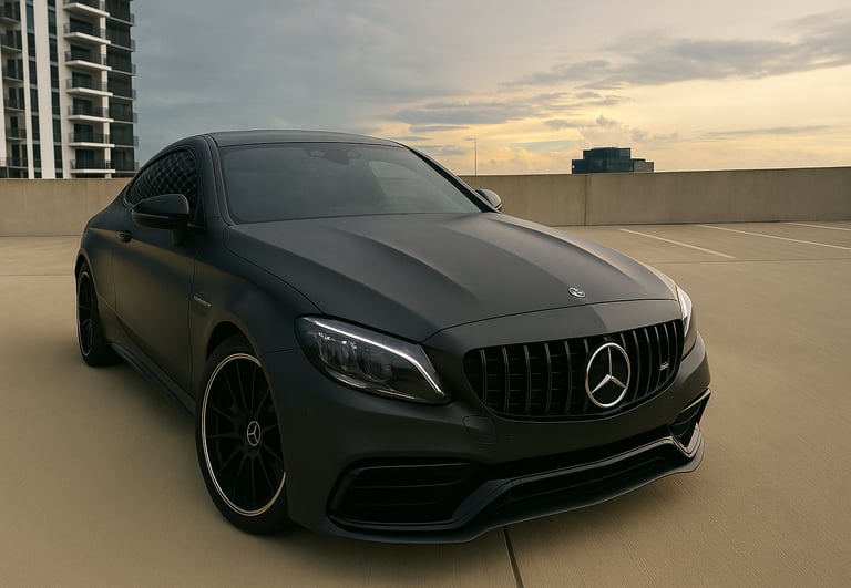 Command attention with this rare factory Satin Matte Black C63 S Coupe, blending luxury and raw performance in perfect harmony.